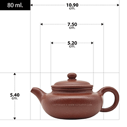 ขนาด : | A : ความยาว (ปลายพวย-ปลายหูจับ) = 10.90 เซนติเมตร B : ความกว้าง ตัวป้าน = 7.50 เซนติเมตร C : ความกว้าง ฝาป้าน = 5.20 เซนติเมตร D : ความสูง (ก้นป้าน-ปลายดุม) = 5.40 เซนติเมตร ความยาวลิ้นฝา = 2.20 เซนติเมตร |