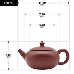 ขนาด : | A : ความยาว (ปลายพวย-ปลายหูจับ) = 11.80 เซนติเมตร B : ความกว้าง ตัวป้าน = 7.90 เซนติเมตร C : ความกว้าง ฝาป้าน = 5.70 เซนติเมตร D : ความสูง (ก้นป้าน-ปลายดุม) = 6.00 เซนติเมตร |