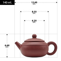 ขนาด : | A : ความยาว (ปลายพวย-ปลายหูจับ) = 12.60 เซนติเมตร B : ความกว้าง ตัวป้าน = 8.50 เซนติเมตร C : ความกว้าง ฝาป้าน = 6.20 เซนติเมตร D : ความสูง (ก้นป้าน-ปลายดุม) = 6.60 เซนติเมตร |